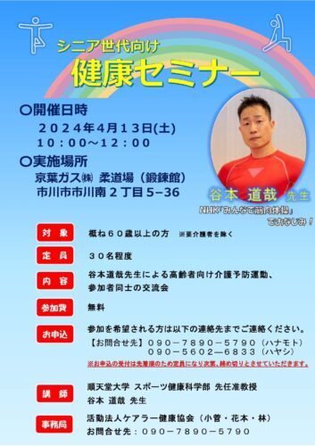 高齢者こそ筋トレを【4/13(土)谷本先生出演無料シニア運動セミナー@京葉ガス柔道場】